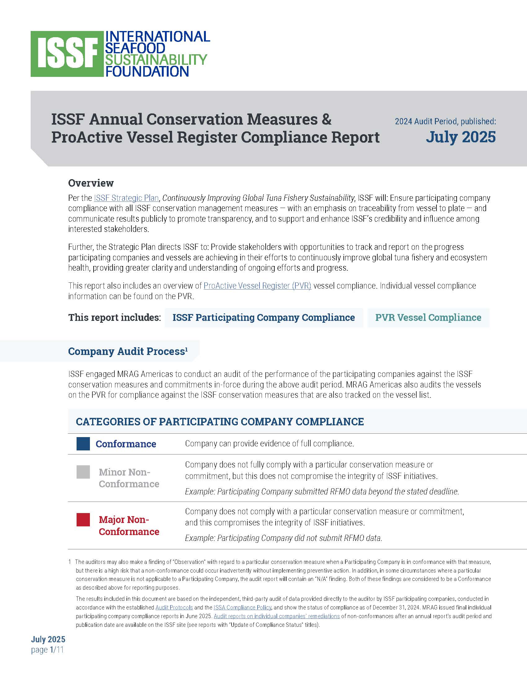 ISSF regularly reports on its activities and outcomes, including through yearly participating company audit and compliance reports, scientific reports, and an annual report.